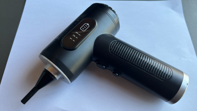 ノズルが清掃用ではないため、空気が漏れやすく効率が悪い。何度もポンピングする必要があり、清掃道具としては実用的ではない。 - 電動エアダスター(この記事のおすすめ)