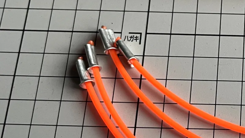 ナイロンコードの端に取り付けて、コードが脱落しないようにするストッパーとして、自作するみなさんが使っている圧着スリーブの一番小さいもの。