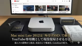 カスタマイズ Mac mini Late 2012は「外付けSSD」で蘇る|YouTube専用機として現役復帰させる方法 発売から十数年経つ古いMac mini Late2012ですが、外部SSDにmacOSをインストールしてYoutube視聴専用機にしました。速度等に問題ありません。 2025.12.02 カスタマイズ