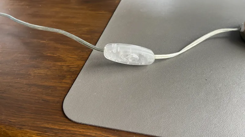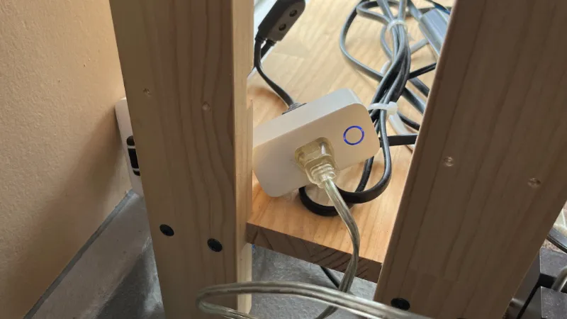 そうして、機械式スイッチを机の上にではなく、机の横になるよう電源コードを垂らすと、スイッチが視界に入ってきません。