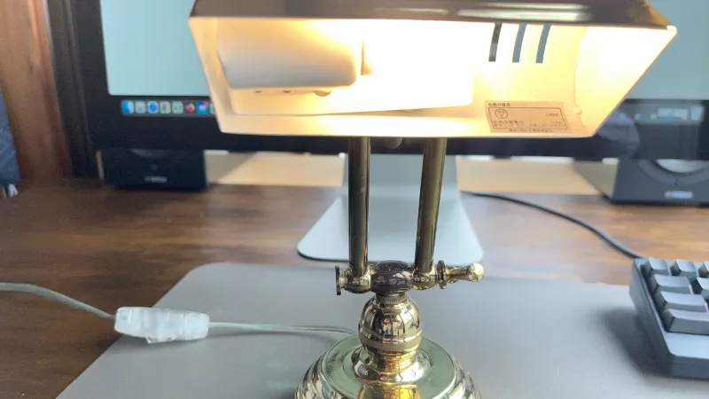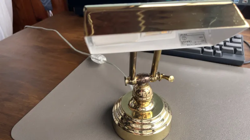 一方で、ピアノライトとよく似た見た目の照明に「バンカーズライト」があります。こちらはクラシックな雰囲気のデスクランプとして知られ、緑色のガラスシェードを採用したデザインが印象的です。