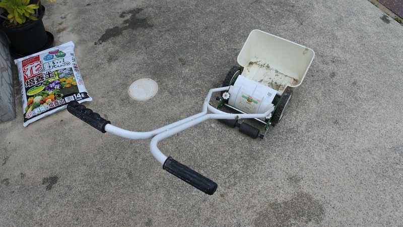 買った当初は、まだ芝生の苗を貼ったばかりで出番なし。