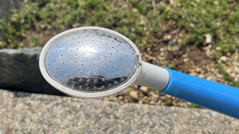 その影響だろうと思いますが、筆者が使っている如雨露で、ハスの実(水の出口)の根本近くが割れ、水漏れが起きました。