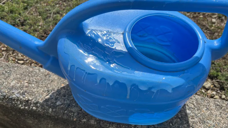 樹脂製、いわゆるプラスチック製の如雨露は割と安価で、しかも軽いので、手軽に園芸を楽しむには最適の水やり器ではあるのですが、弱点があります。