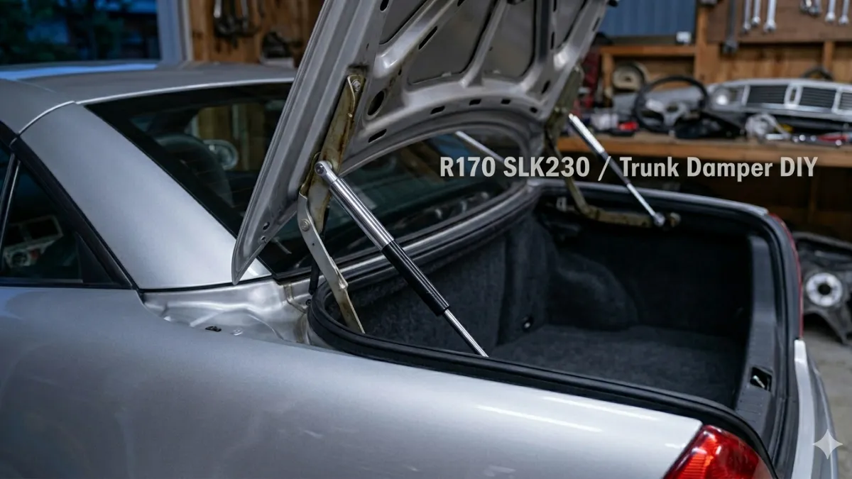 ダンパーの交換ですが、トランクリッド落下防止のために何か「つっかい棒」が必要です。
